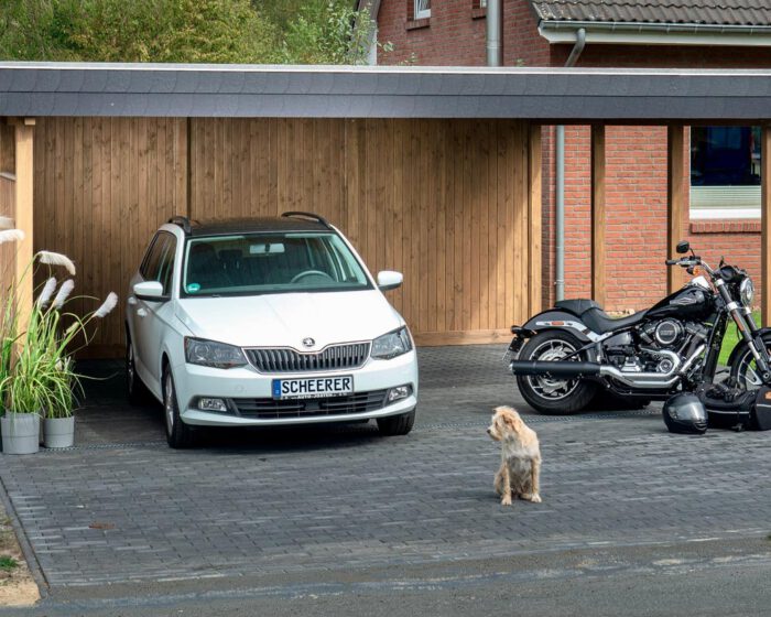 Übrigens bekommen Sie bei uns auch Motorradgaragen aus Holz, welche wir ebenfalls gerne bei Ihnen montieren! So bleibt auch Ihr Motorrad oder Fahrrad geschützt.